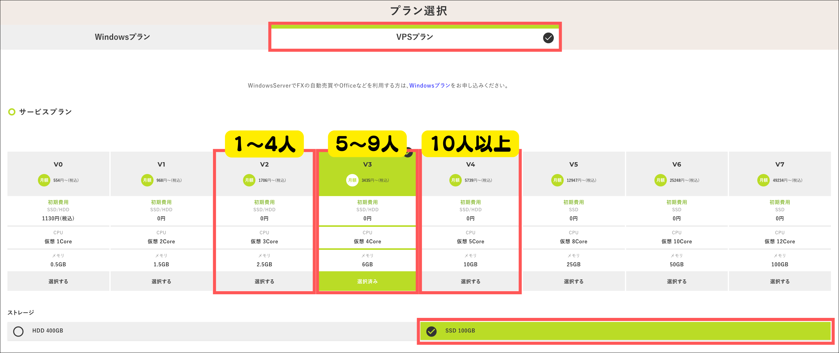 WindowsServerオプションは不要で大丈夫です。V2プラン(1~4人) V3プラン(5~9人) V4プラン(10人以上) 1ヶ月 2,167円/月 4,012円/月 6,662円/月 6ヶ月 1,936円/月