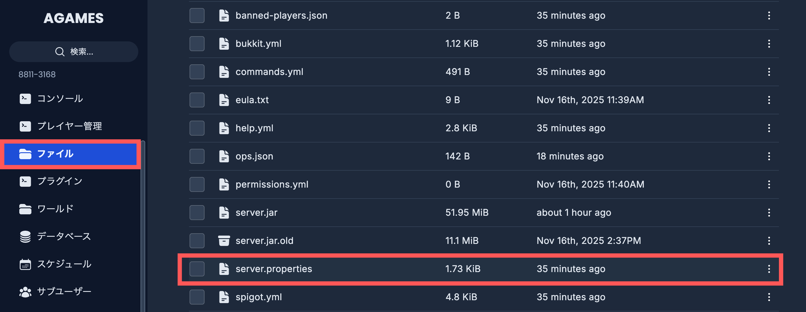 そのため、server.properties を編集して設定します。AGAMESに関するよくある質問
