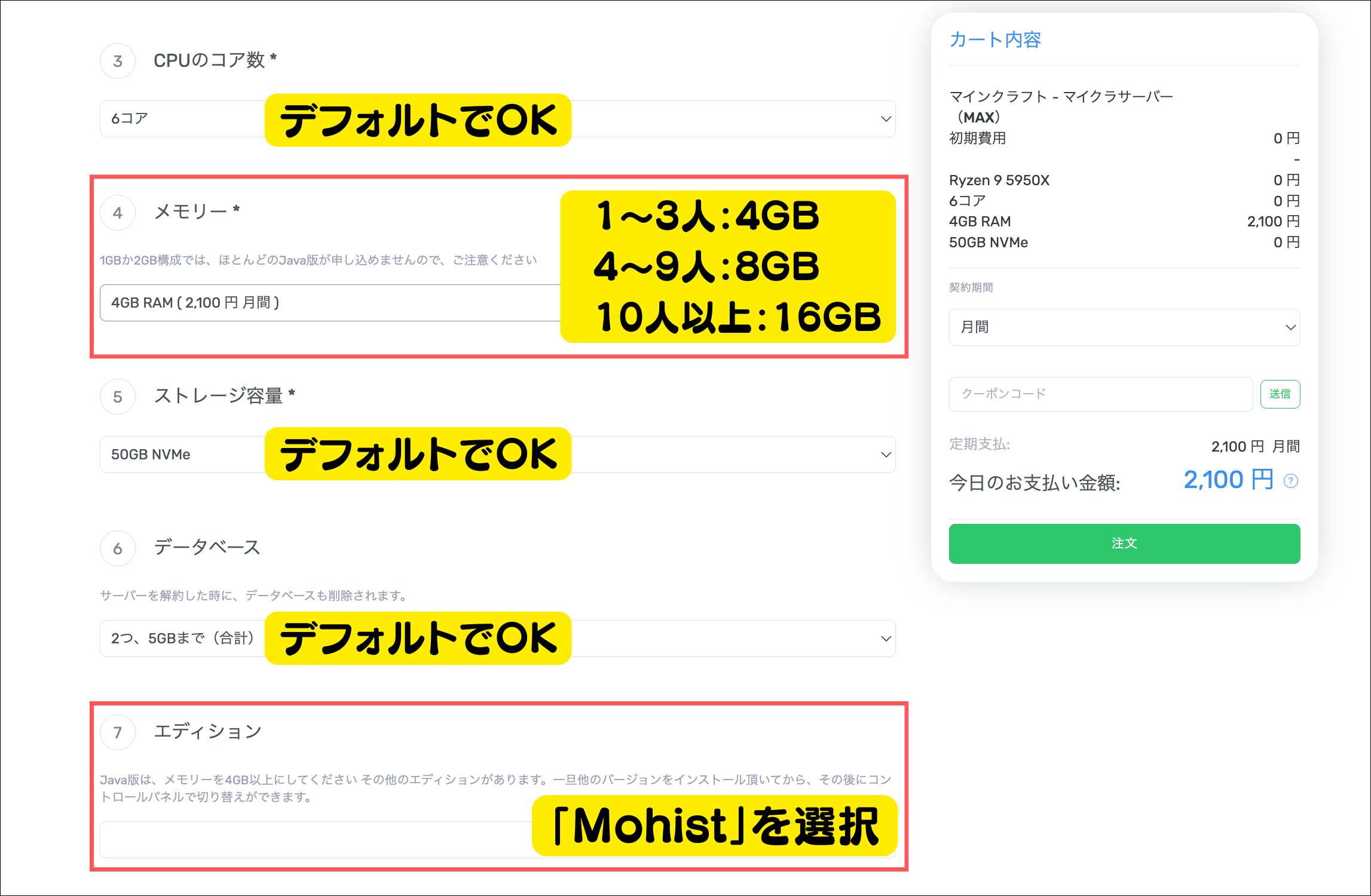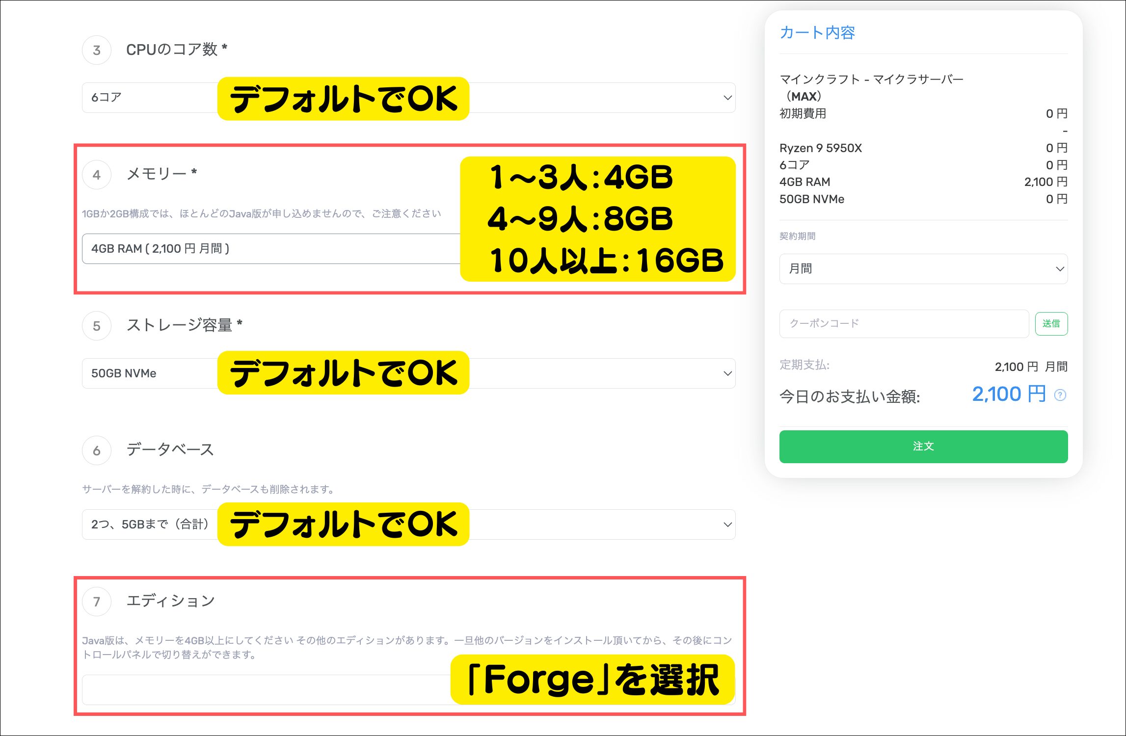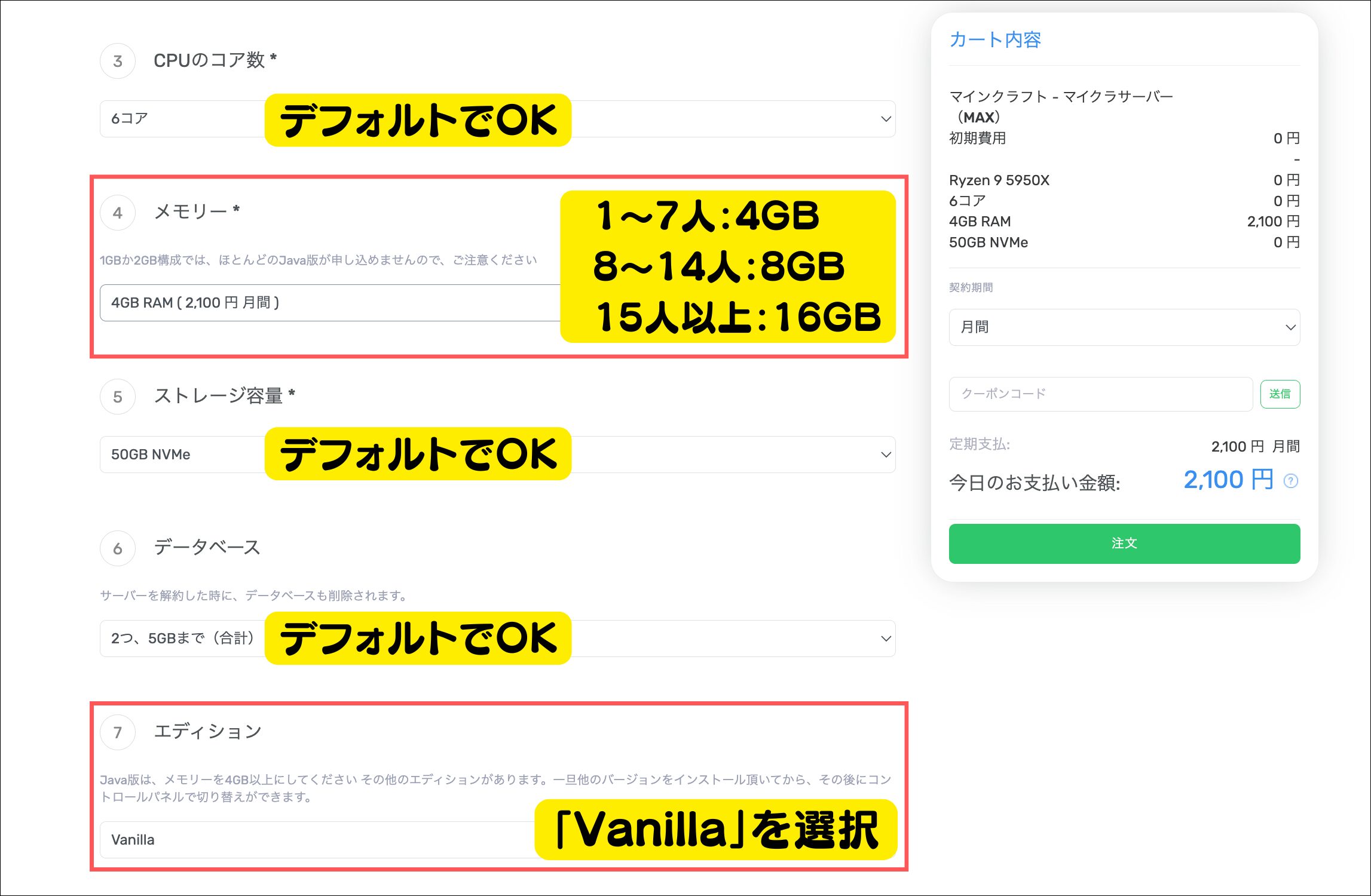 | プラン(プレイ人数) | 4GB (1~7人) | 8GB (8~14人) | 16GB (15人以上) |