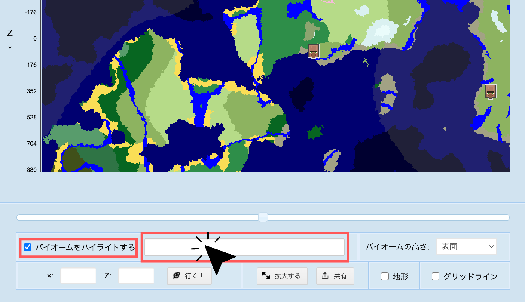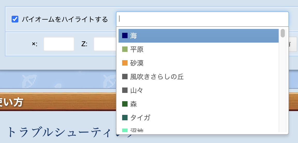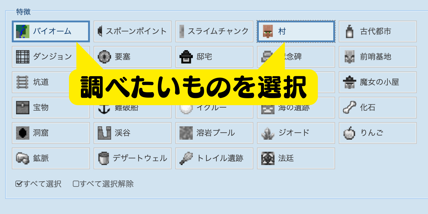 ハイライトしたいバイオームを選択します。