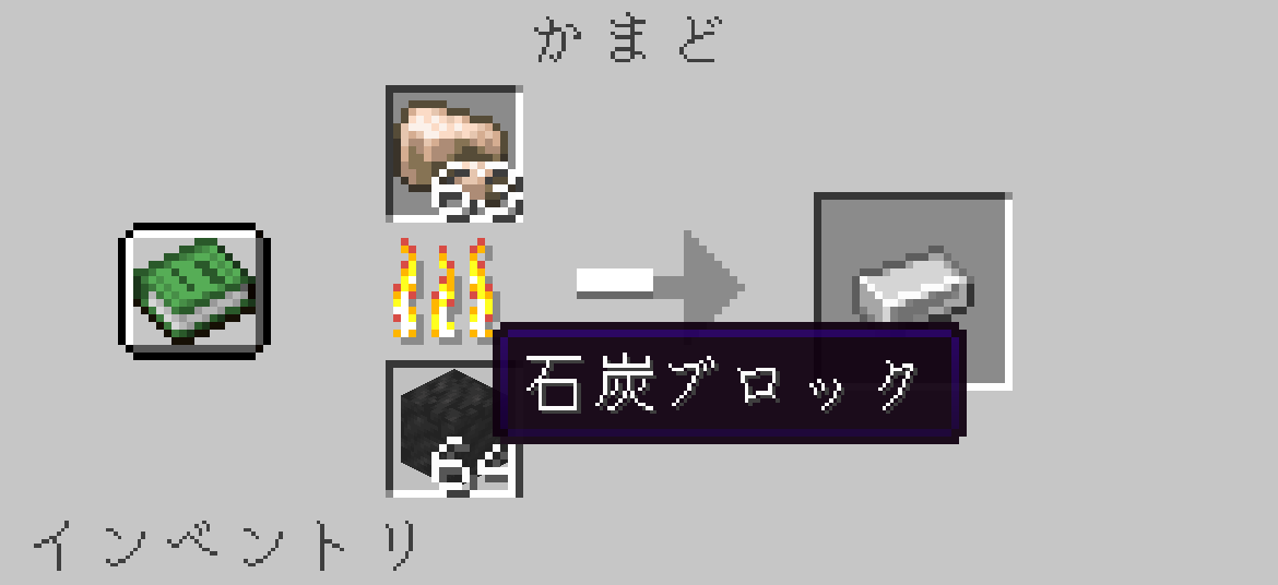 石炭ブロックは石炭を9つクラフトしたもので、1つで80個精錬することができます。
