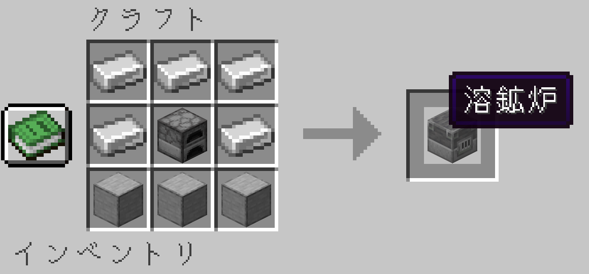 溶鉱炉はかまど/鉄5つ/滑らかな石3つで作ることができます。