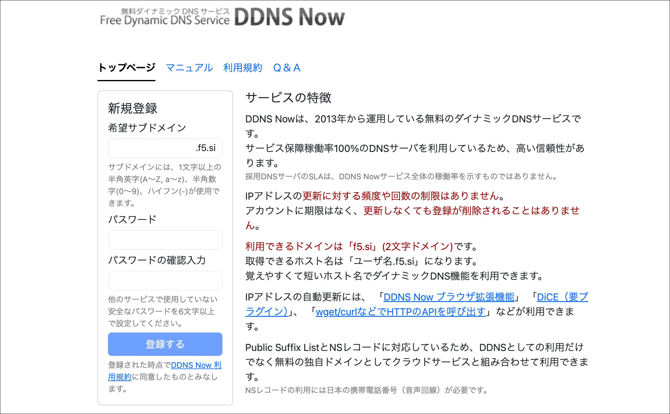 無料ドメインを提供しているサイトはいくつかあるのですが、今回は永久にドメインを利用することができる「DDNS NOW」というサイトを使って解説していきます。