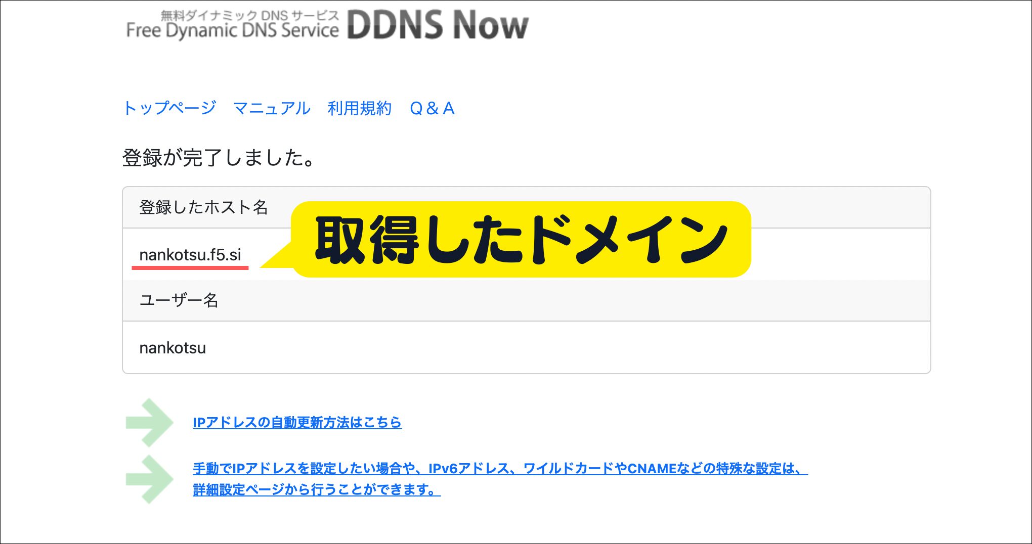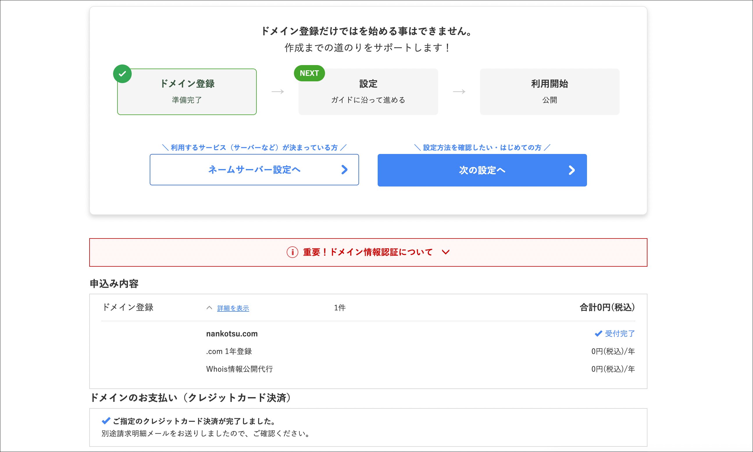 このような画面が表示されればドメイン取得完了です。