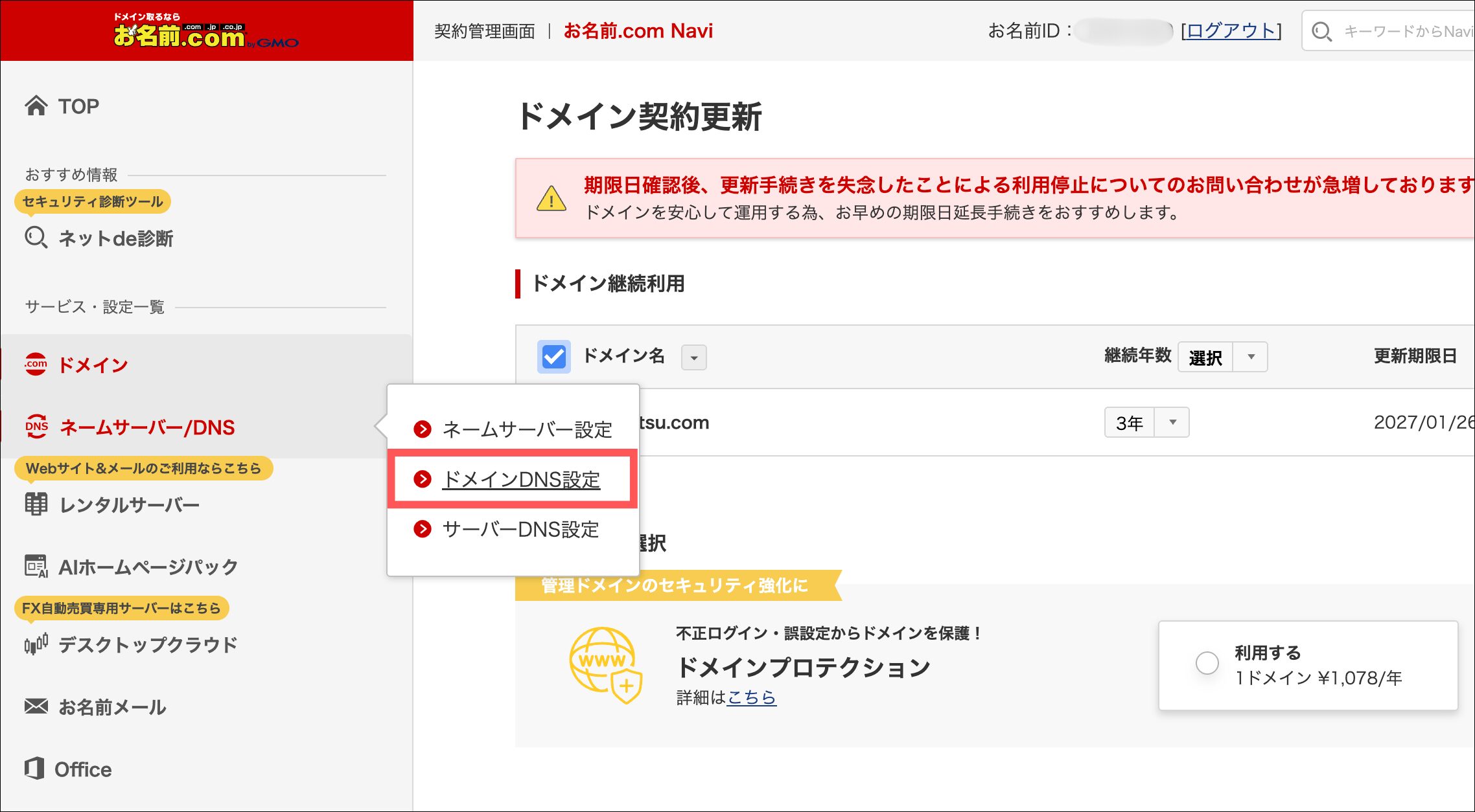 お名前.comにログイン