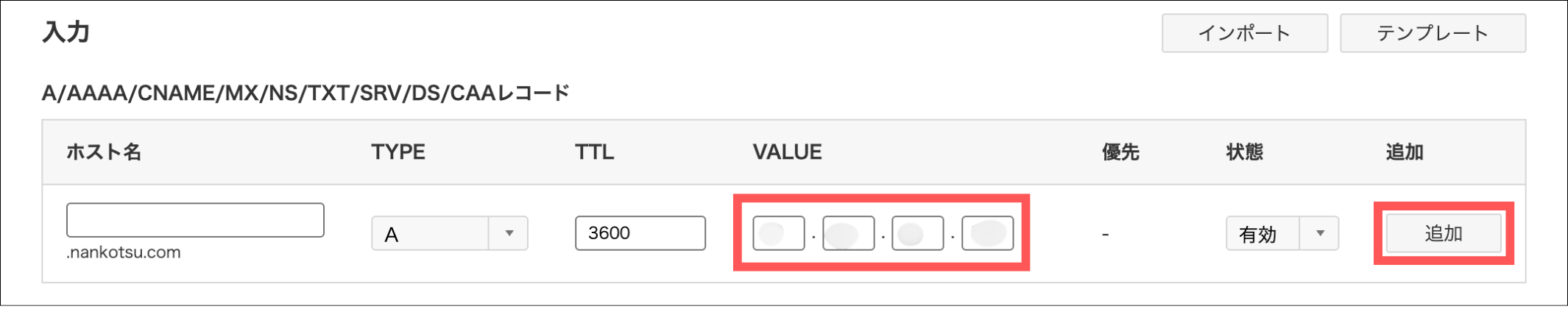 VALUEにサーバーのIPアドレスを入力して「追加」をクリック