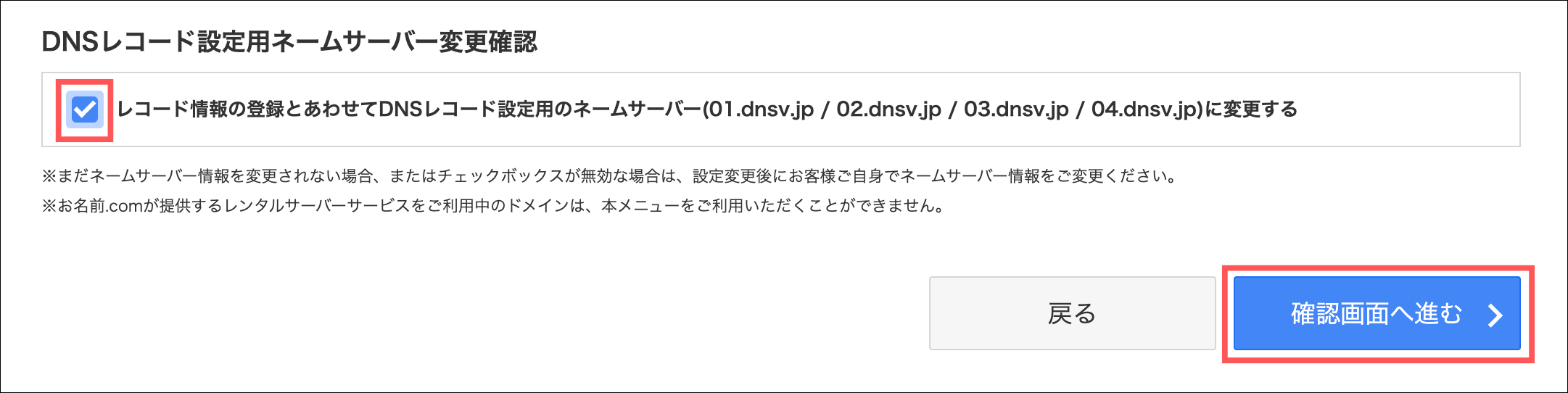 チェックボックスにチェックを入れ「確認画面へ進む」をクリック