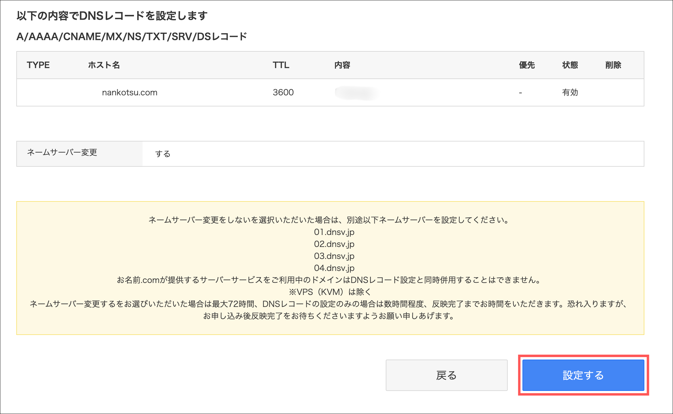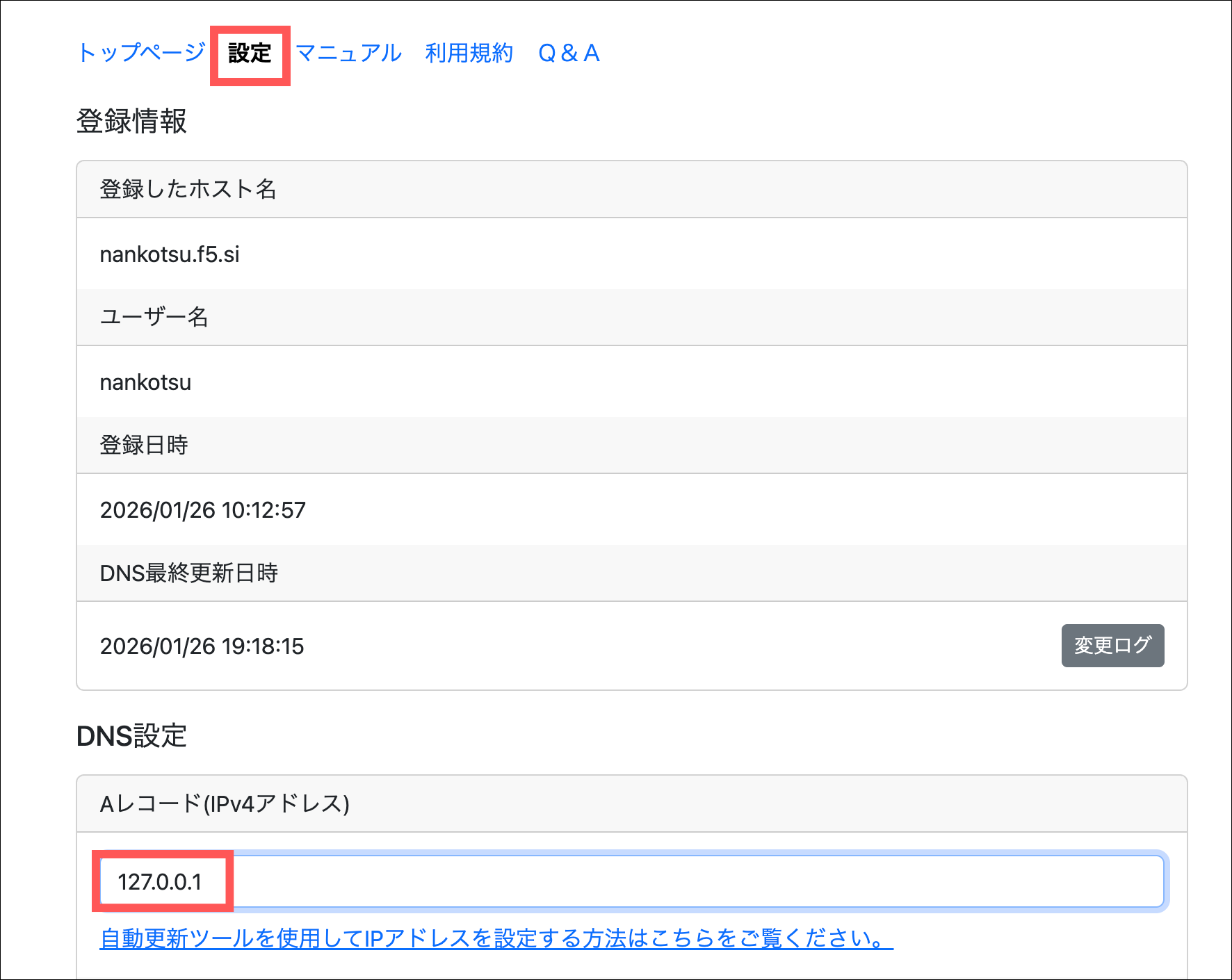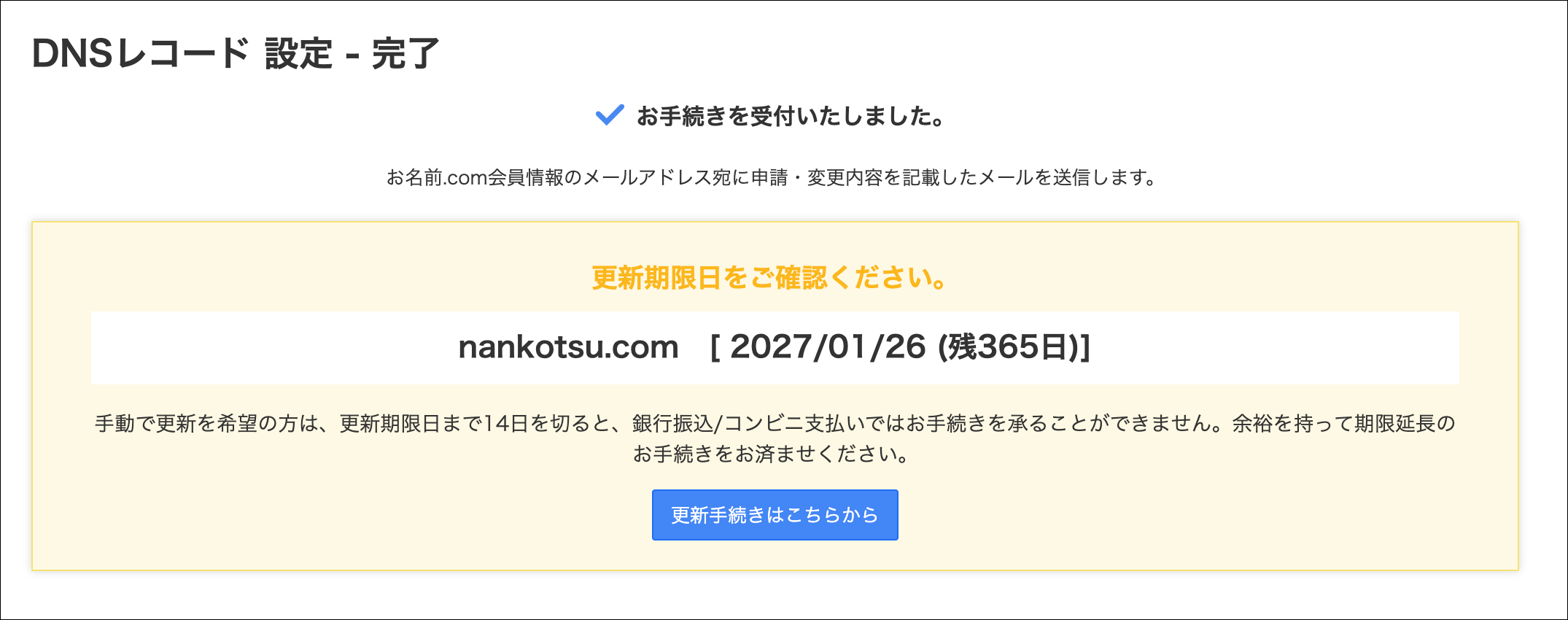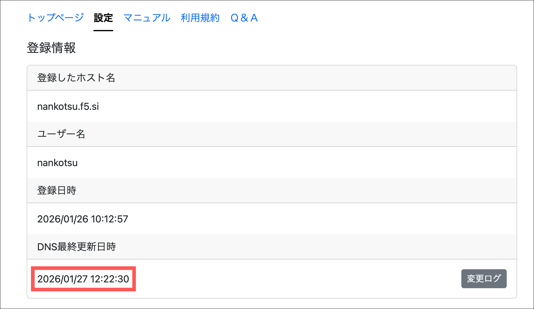 登録情報の「DNS最終更新日時」が更新されていれば完了