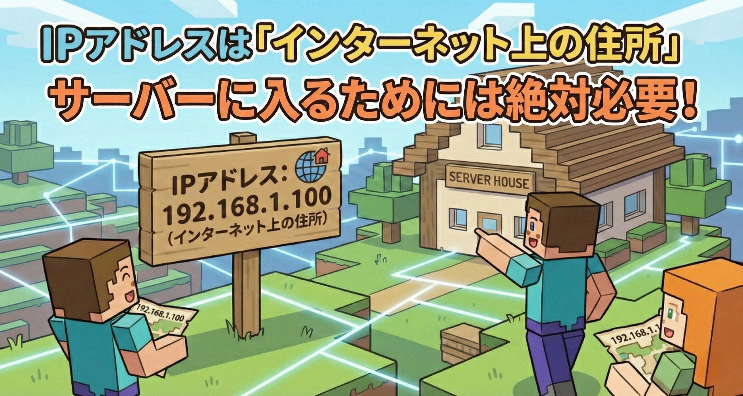 マイクラのマルチプレイでは、サーバーに入るために「サーバーアドレス(IPアドレス)」が絶対必要です。