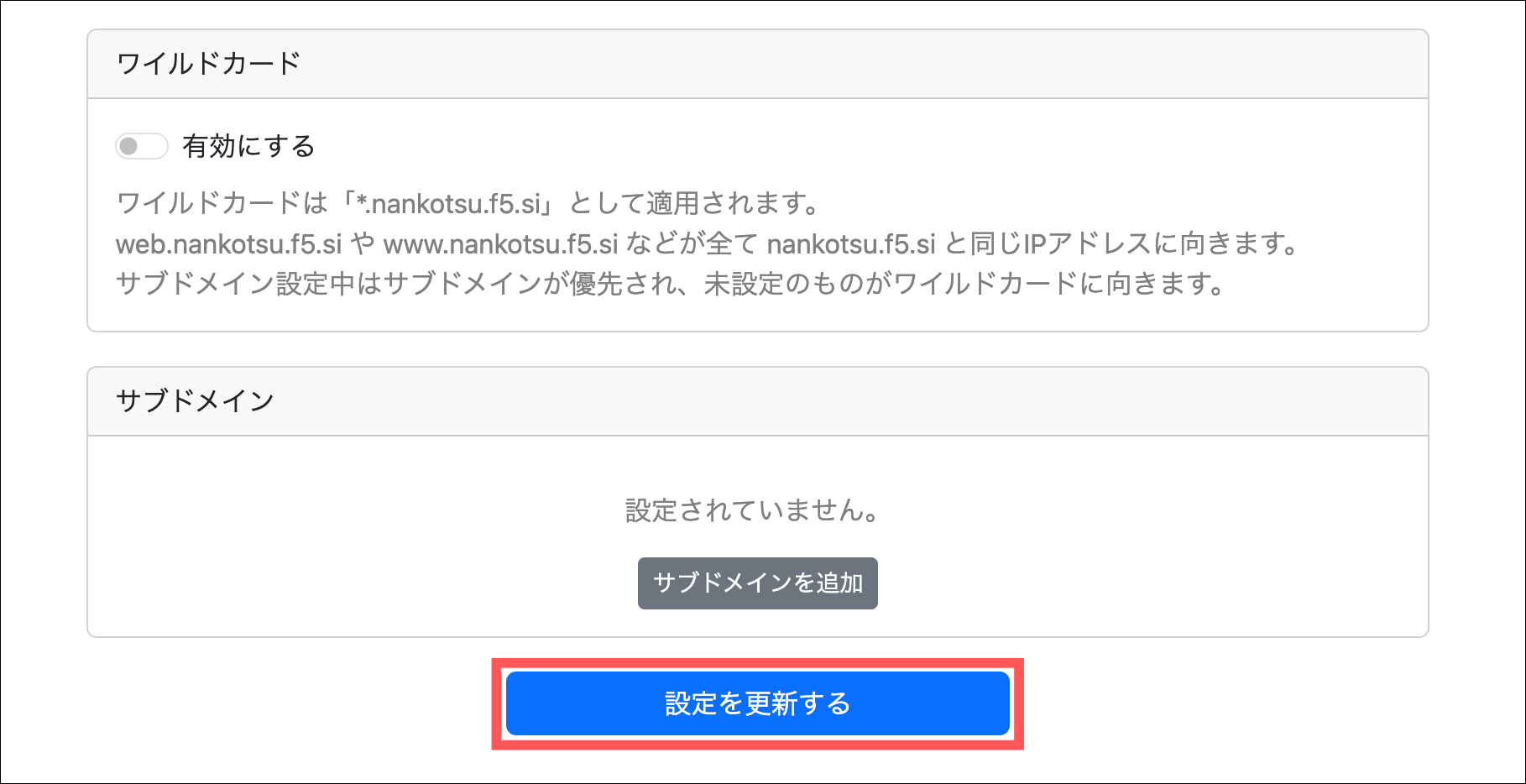 このような画面が表示されればドメイン取得完了