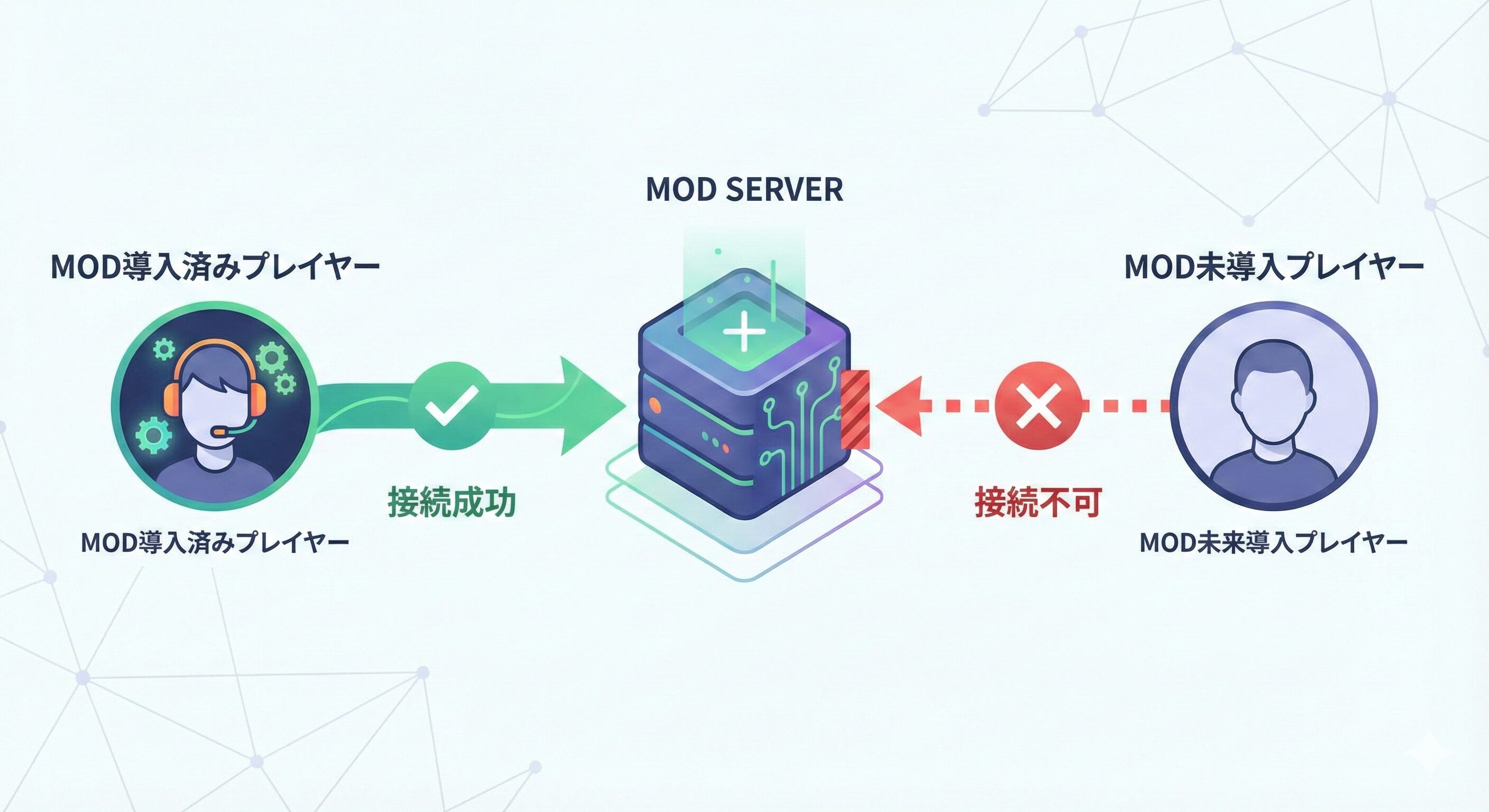 はい、あります。 Modサーバーは、新しい要素を追加するサーバーであるため、参加するプレイヤー側も自分のPCに同じModを導入する必要があります。