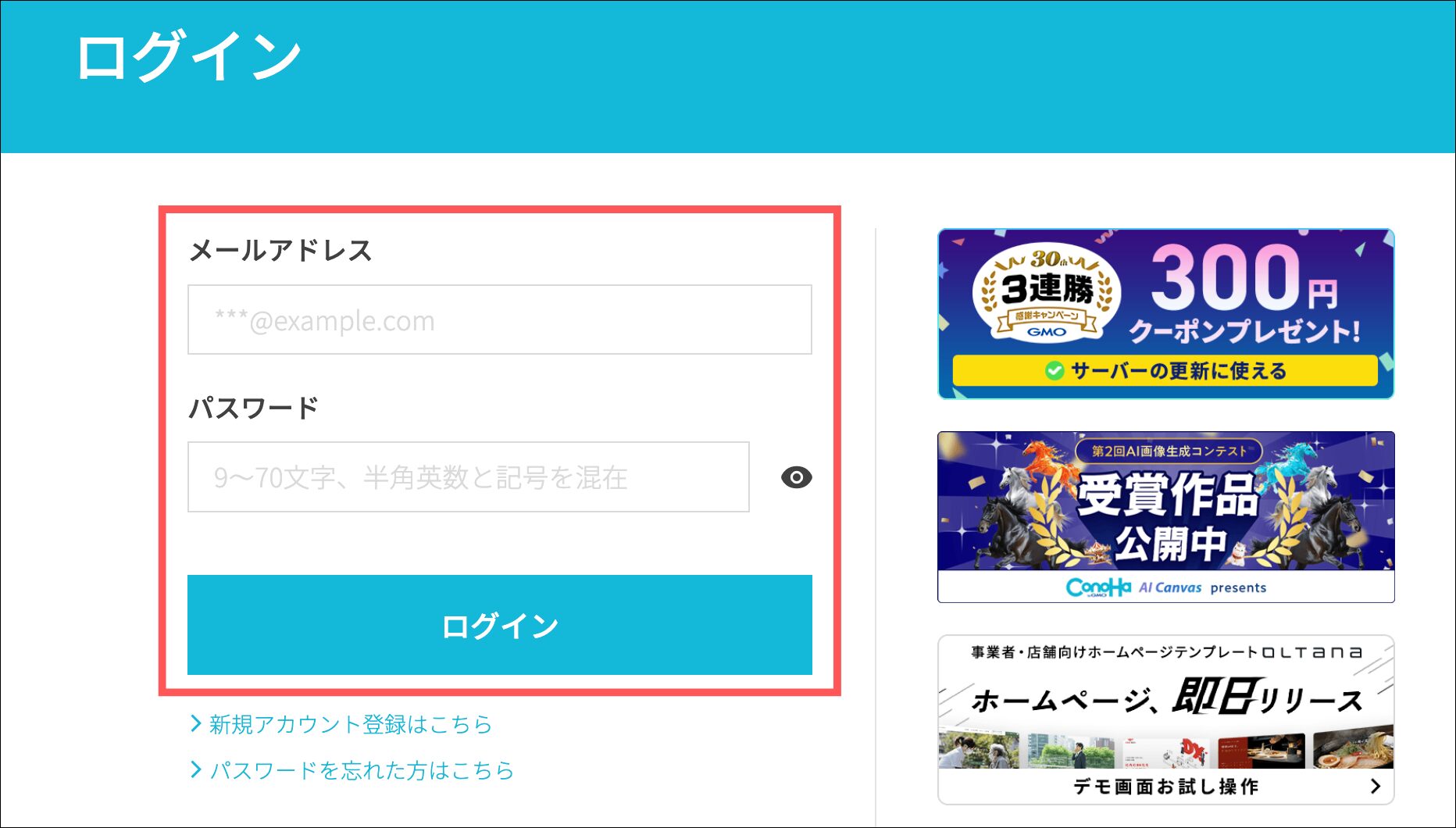 はじめに、Minecraft managerのコントロールパネルにログインします。