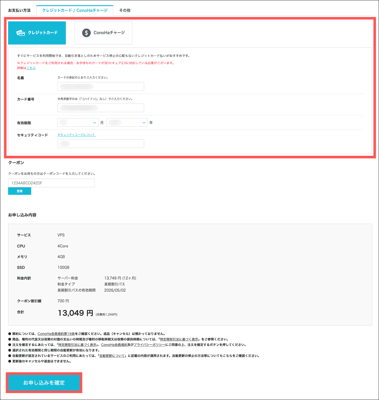 ConoHa for GAMEのお申し込みフォームにアクセス