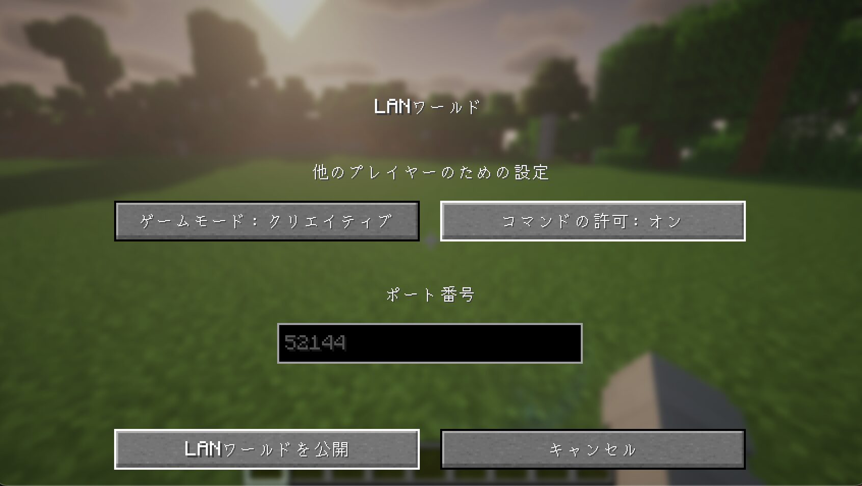 ですが、「コマンドを許可」をオンにして「LANワールドを公開」するとOP権限を付与された状態と同じことが行えます。