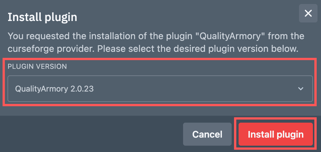 サーバーのバージョンに合わせたら「Install plugin」をクリック
