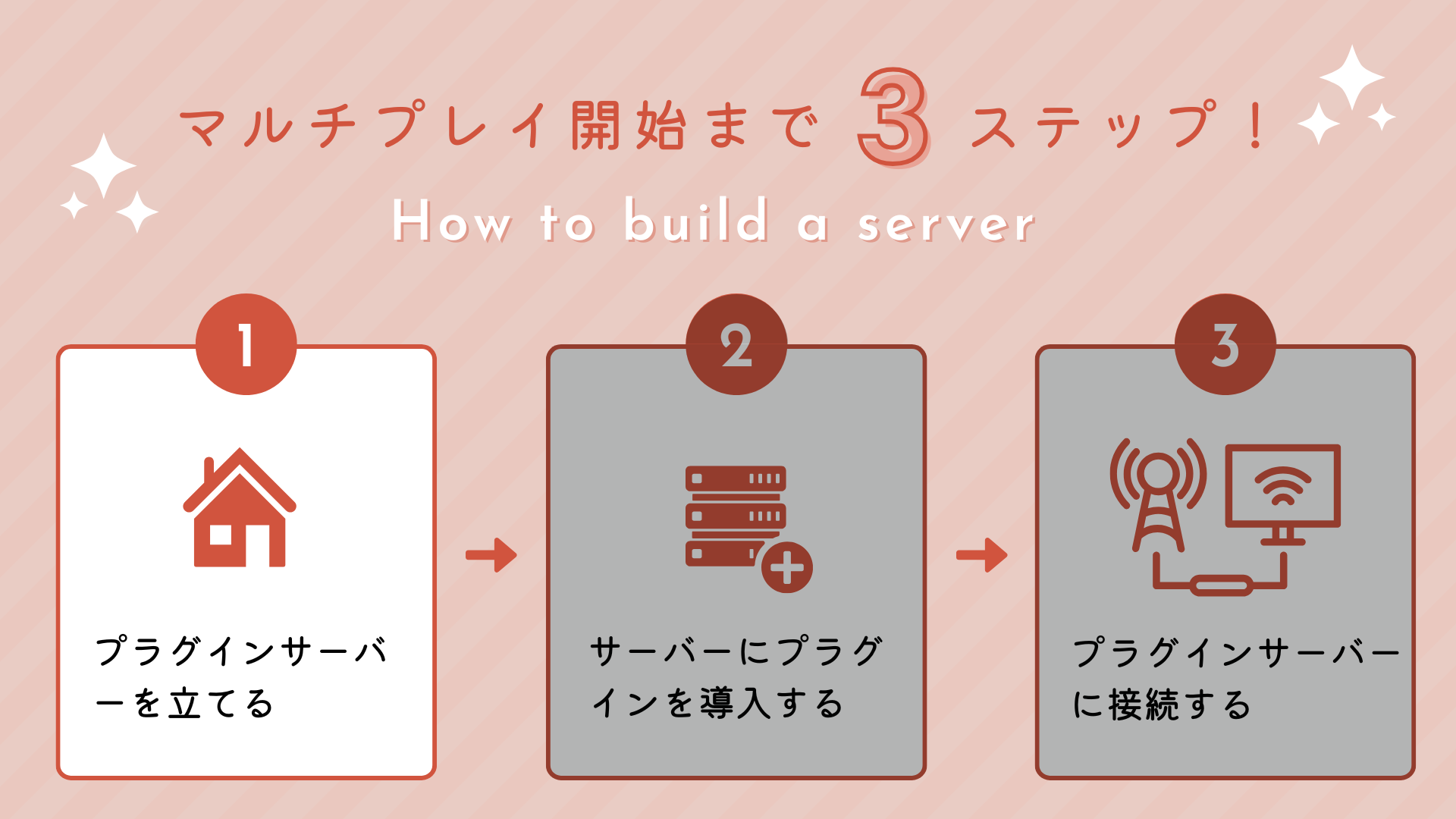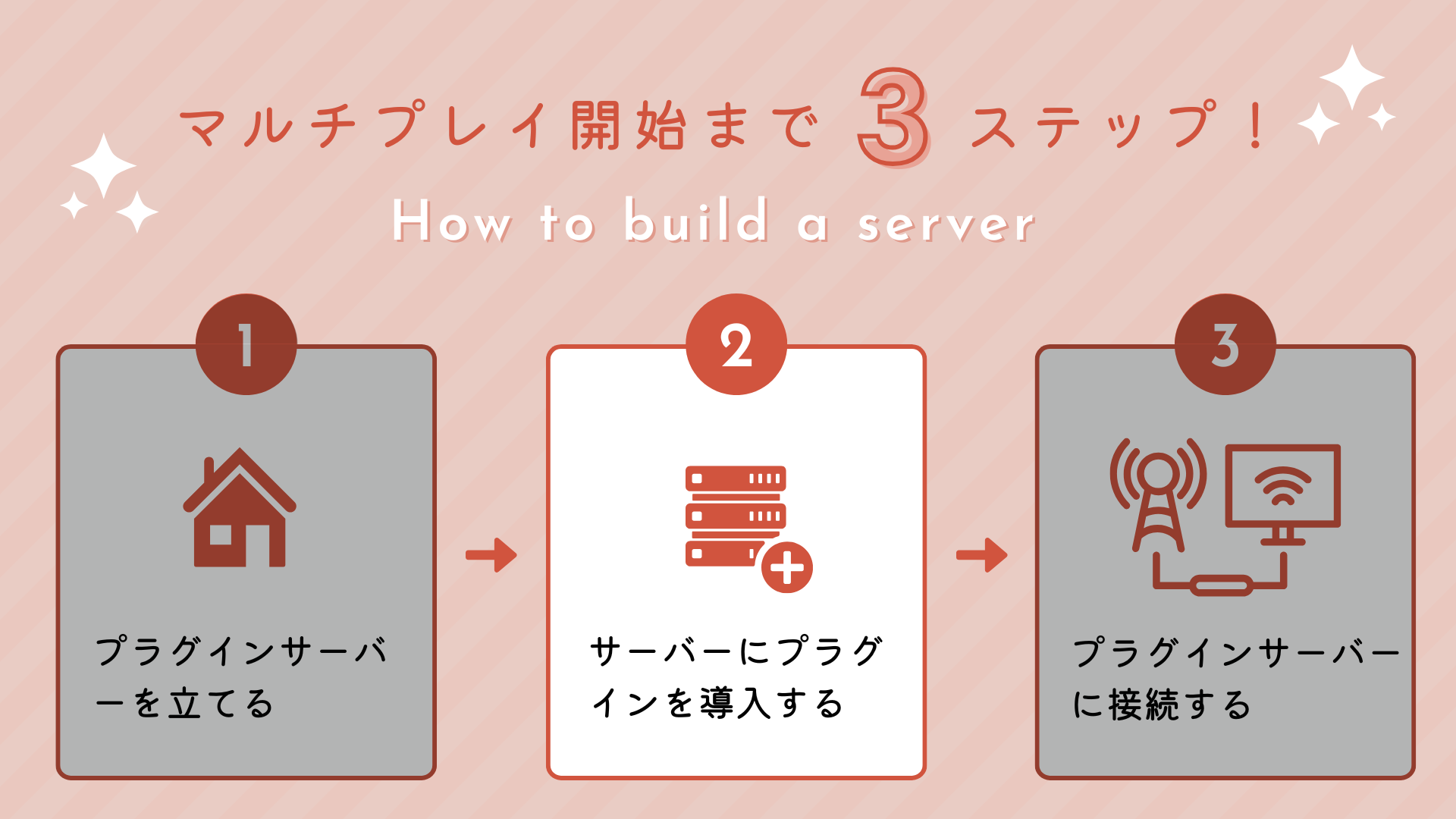 プラグインサーバーとは、「プラグイン」を導入してマルチプレイを行えるサーバーのことです。