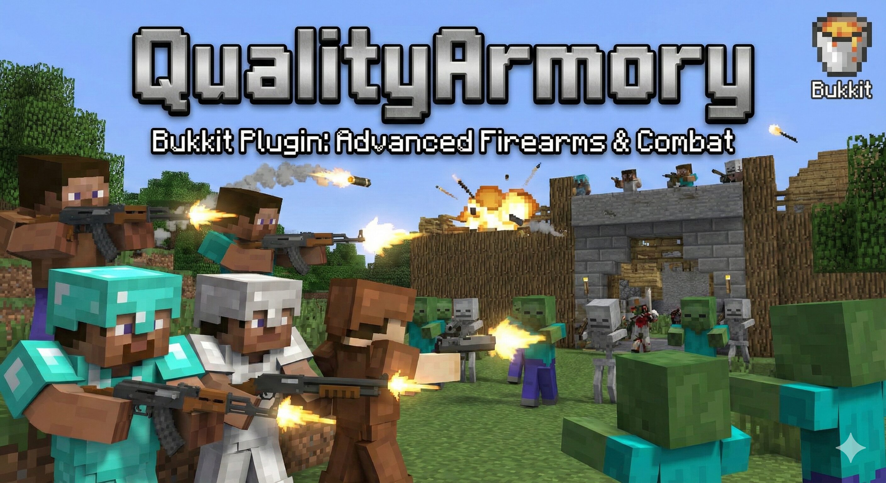 サーバー内に最新の武器として「銃器」を追加し、戦闘スタイルを激変させるプラグインです。