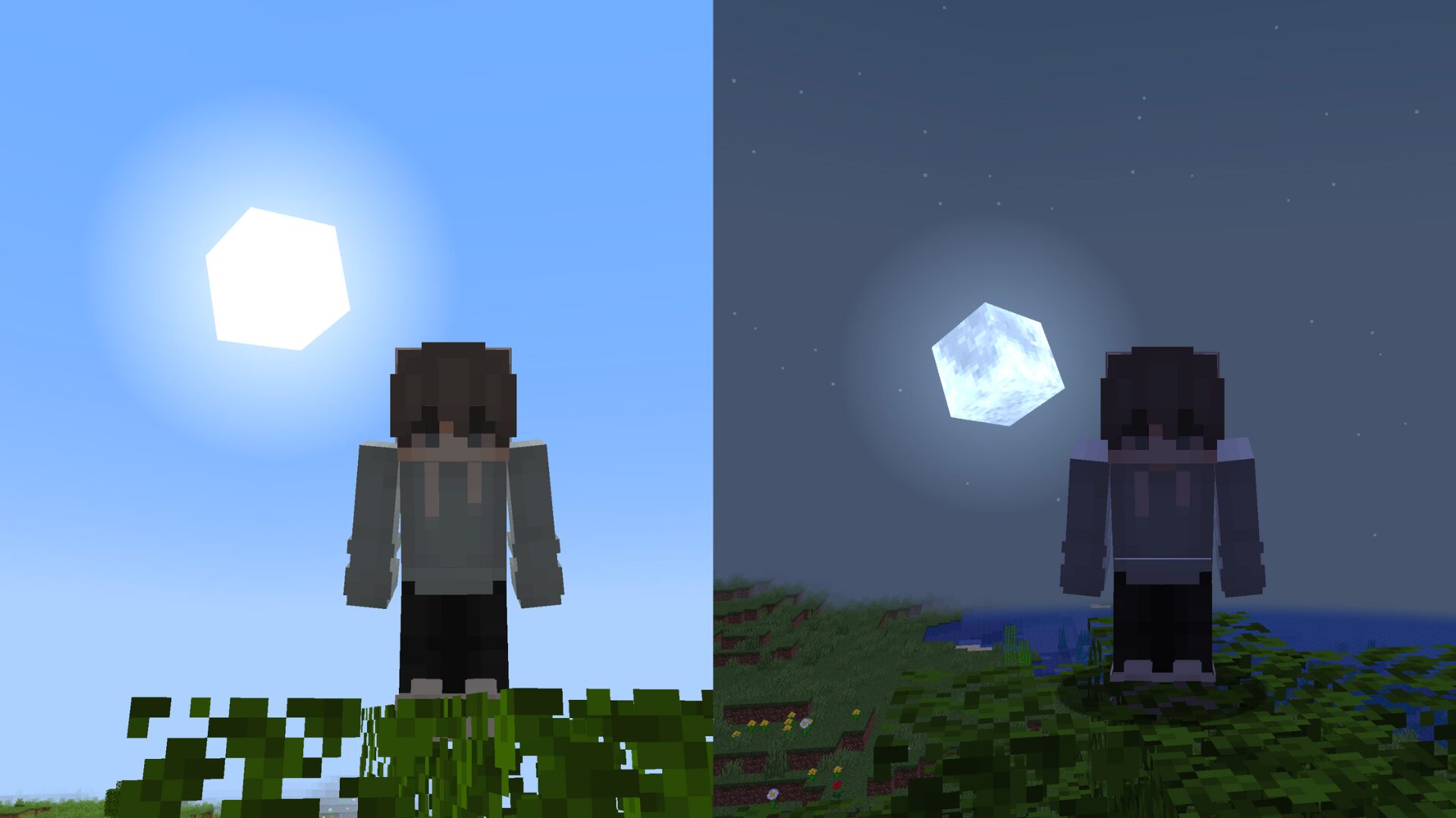 このリソースパックは、太陽/月をキューブ上に変化させることができるリソースパックです。