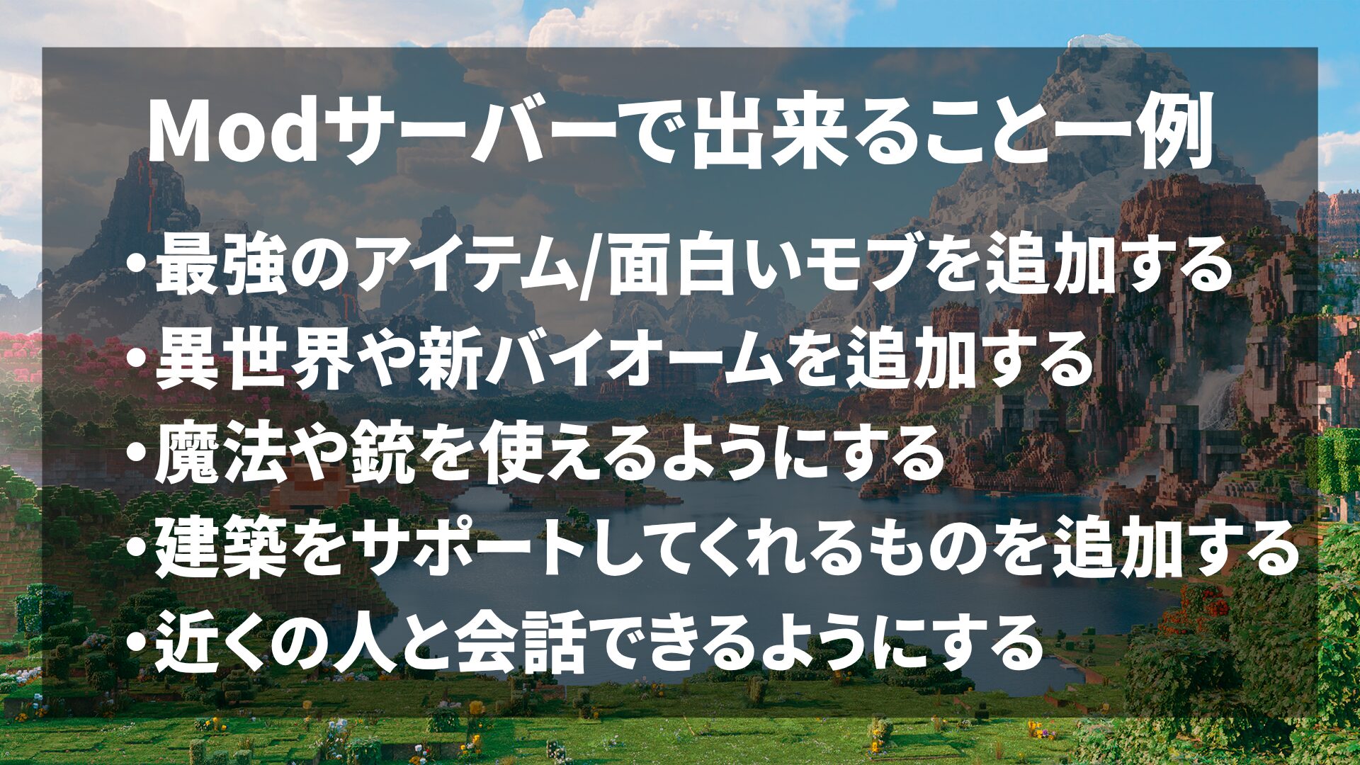 Modサーバーは、Modを導入して新しい要素を追加することができるマイクラサーバーです。