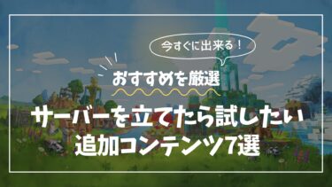 マイクラサーバーを立てたら試したい追加要素は「マイクラサーバーを立てたら試したい!マルチプレイがもっと楽しくなる追加要素を紹介」という記事で詳しく解説しているので、参考にしてみてください。