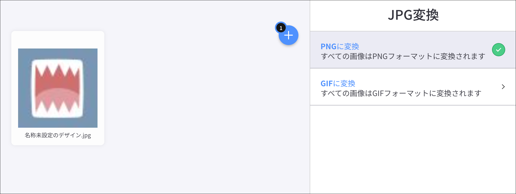 この時点で画像がPNG形式でない場合は、こちらのサイトでPNG形式に変換してください。