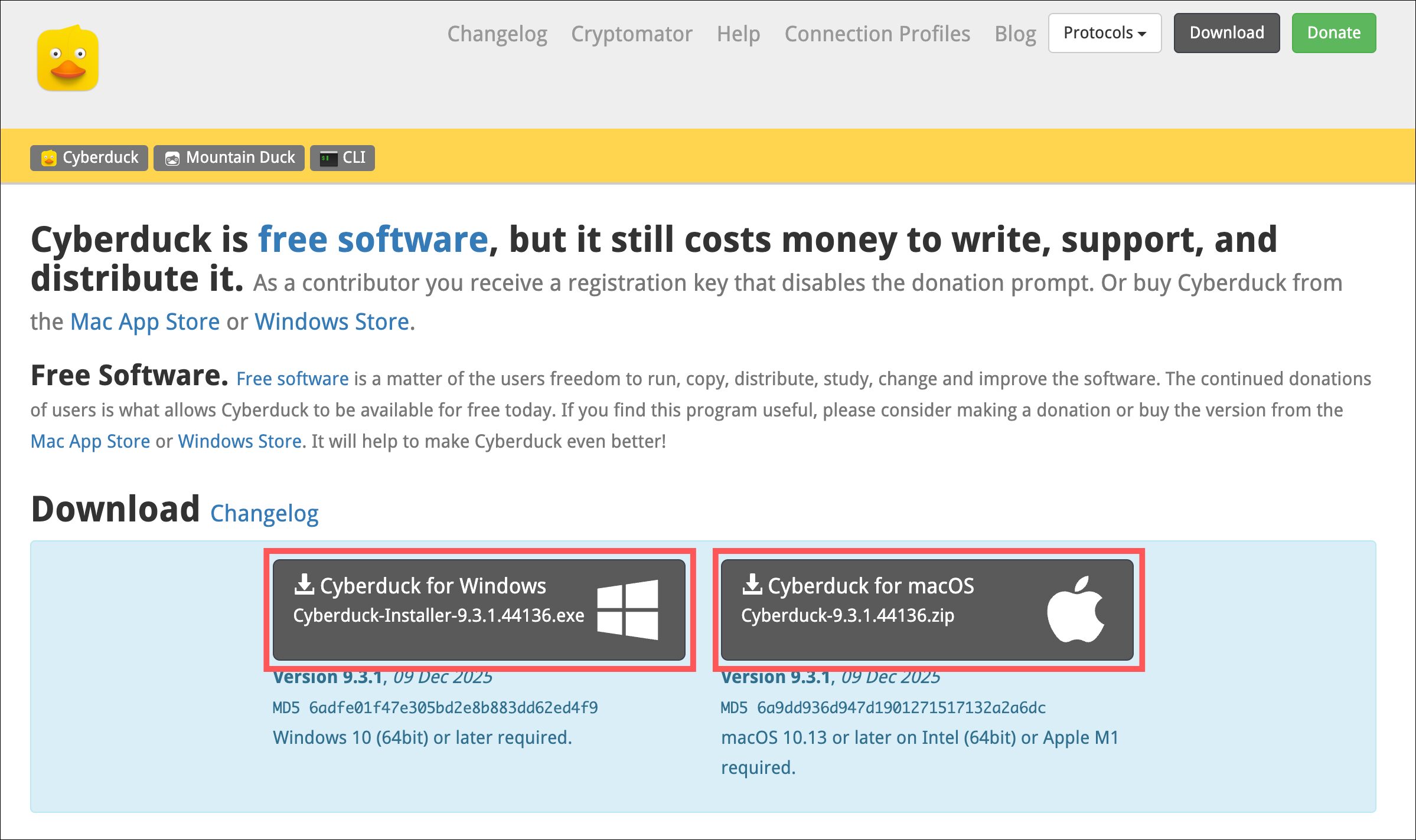 こちらのリンクからFTPソフト(Cyberduck)をダウンロードしてください。