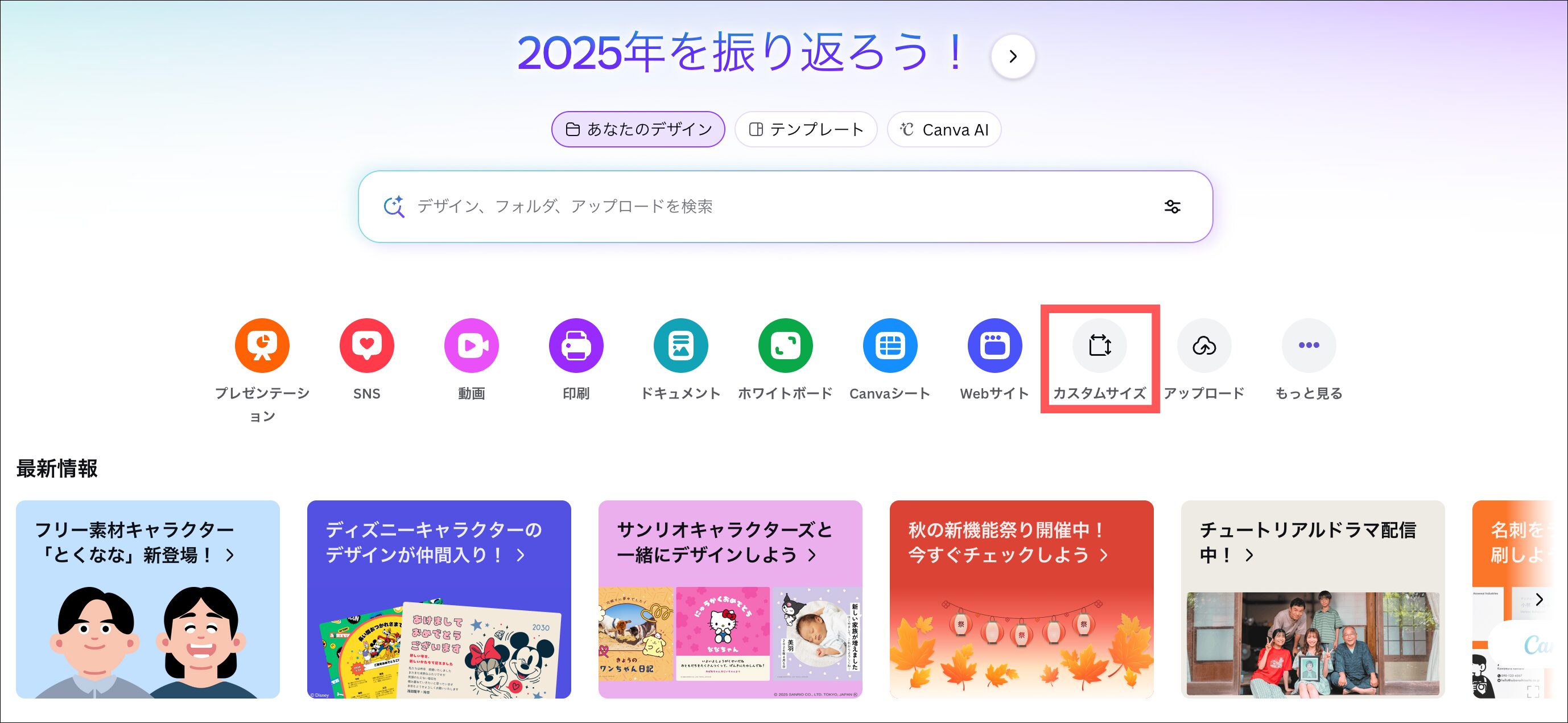カスタムサイズを選択