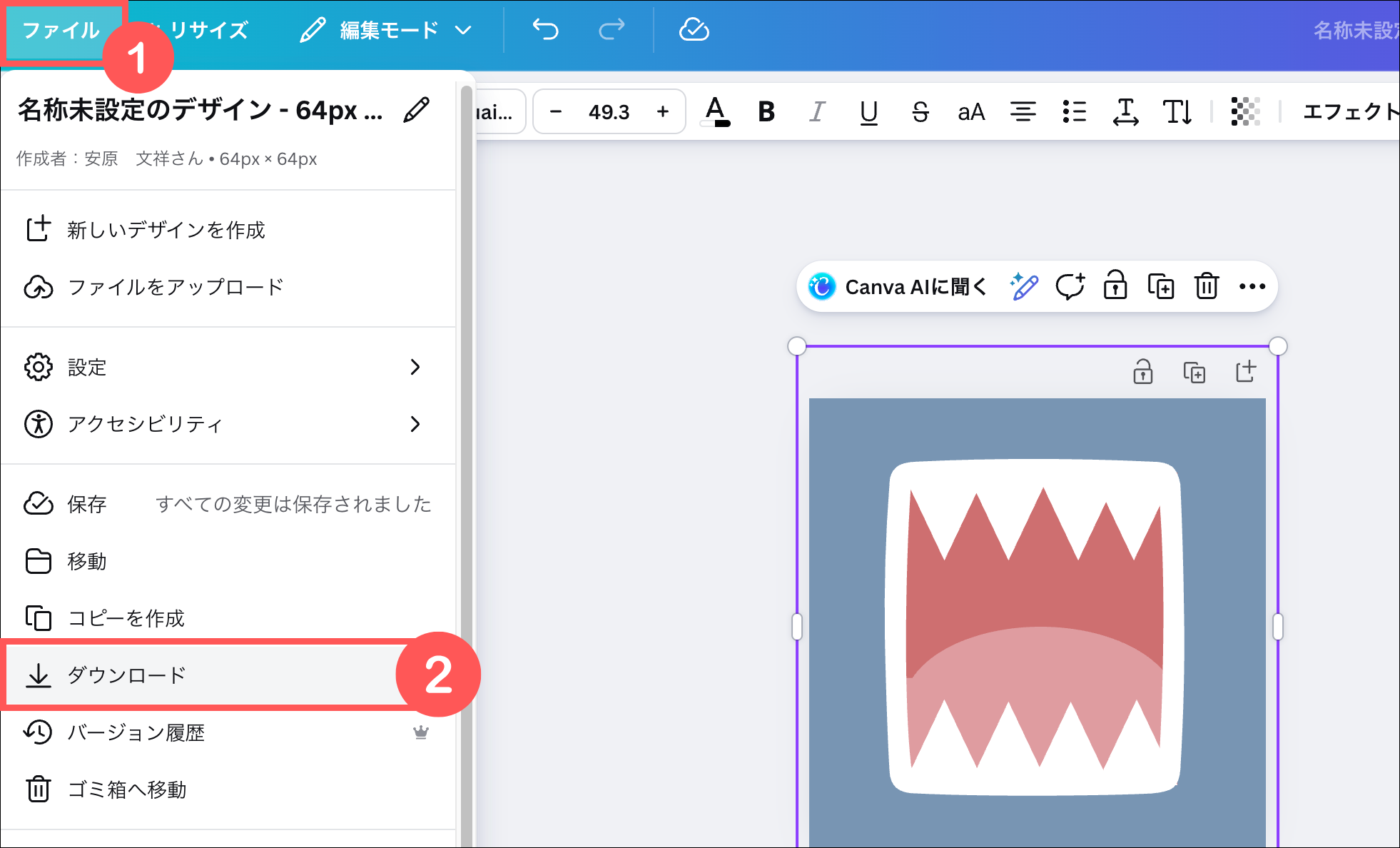 完成したら「ファイル」▶︎「ダウンロード」の順でクリック