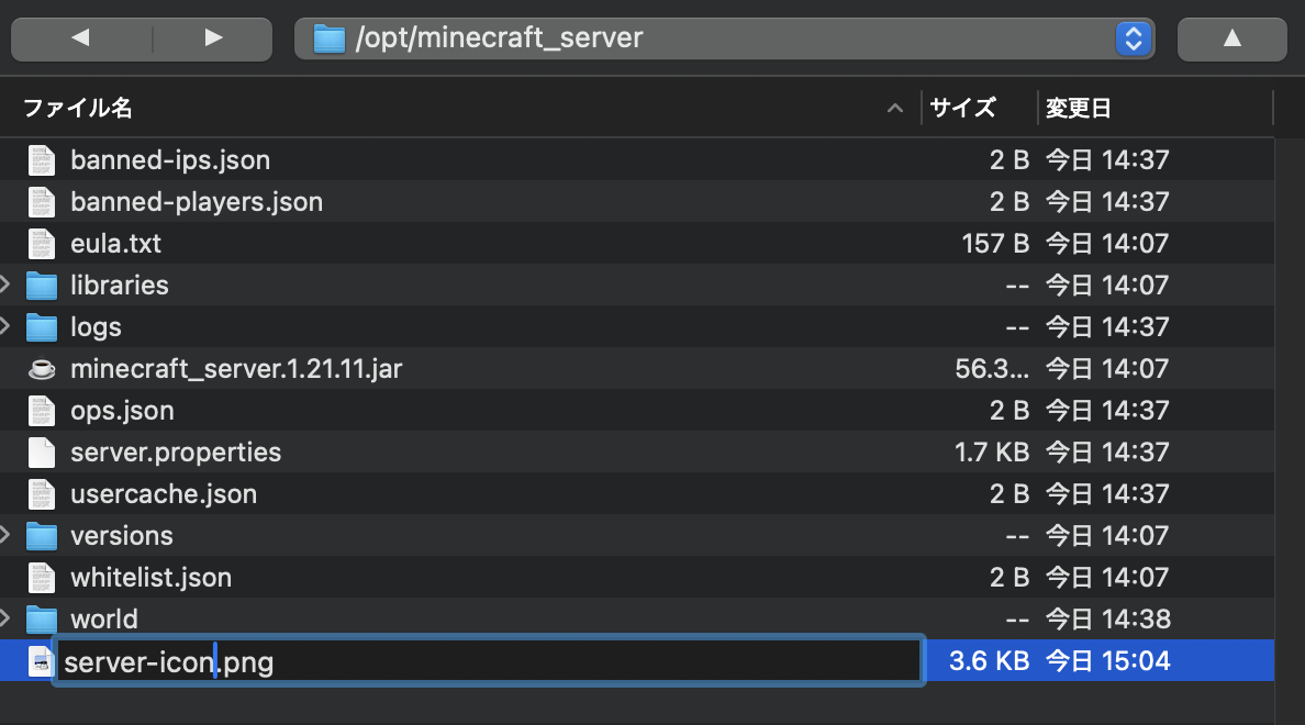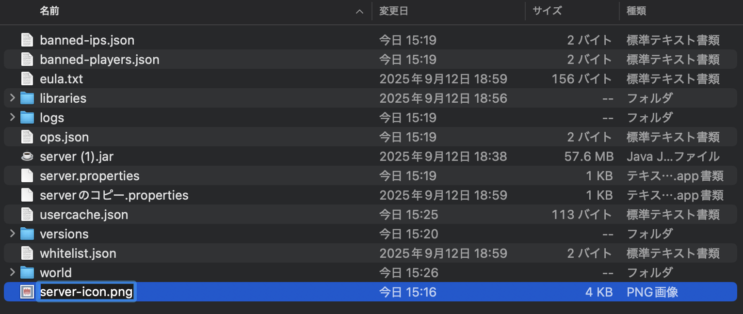 画像の名称を「server-icon」に変更する
