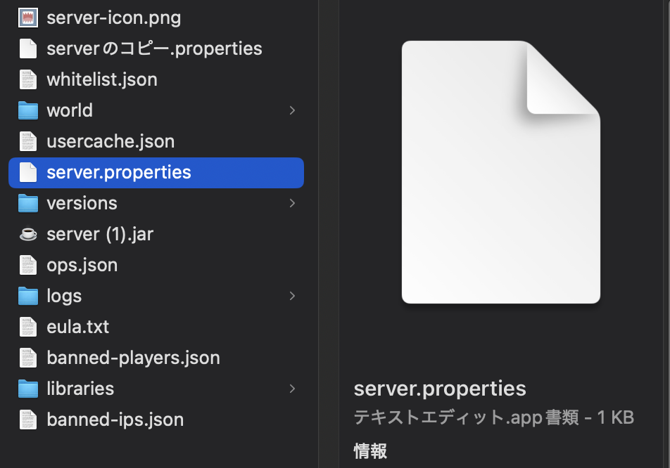 まずはサーバーフォルダーの「server.properties」というテキストを開く