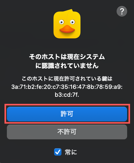 このような表記が出てきたら「常に」にチェックを入れ「許可」をクリック