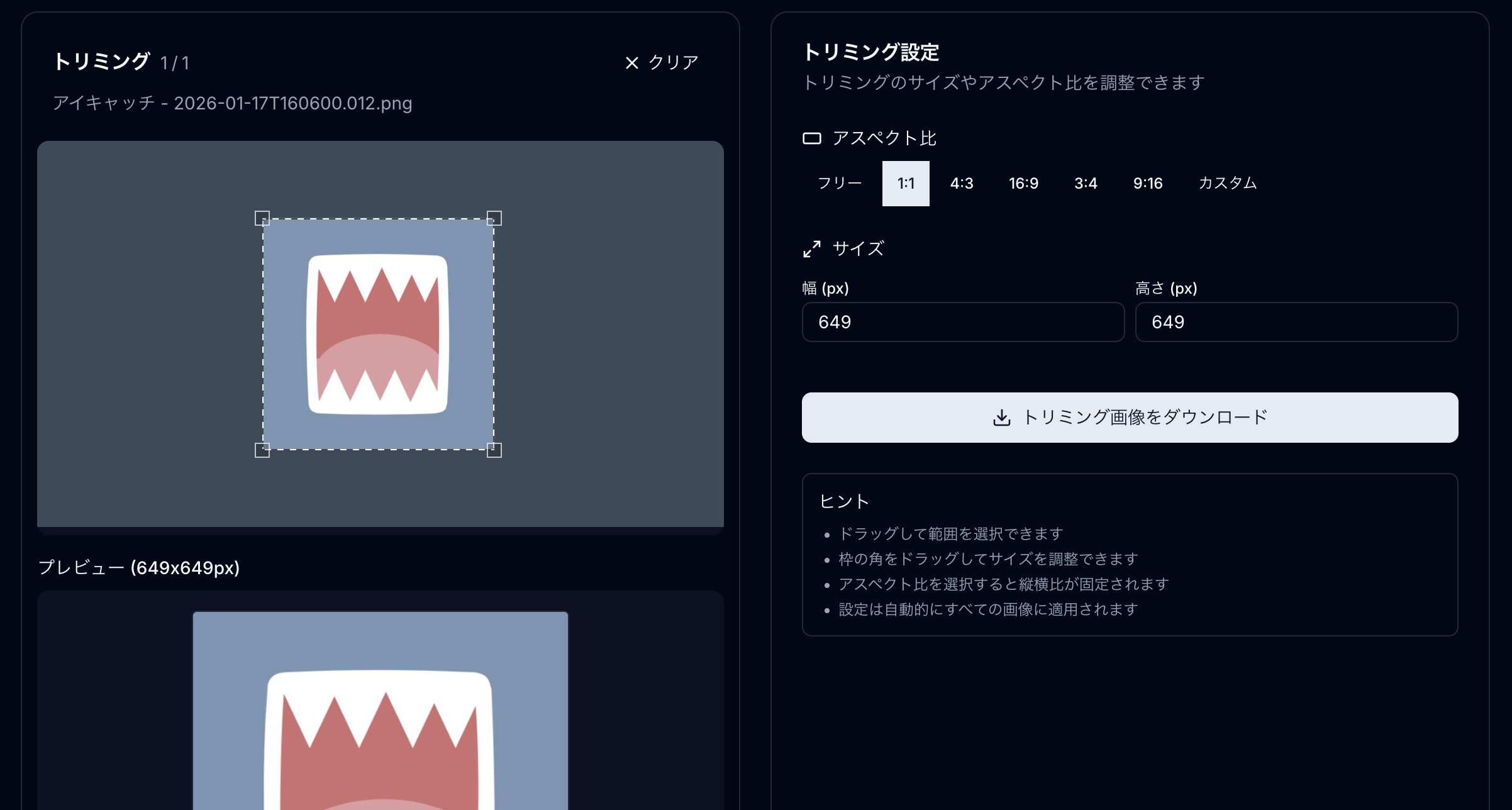 1. 画像を正方形に切り抜き